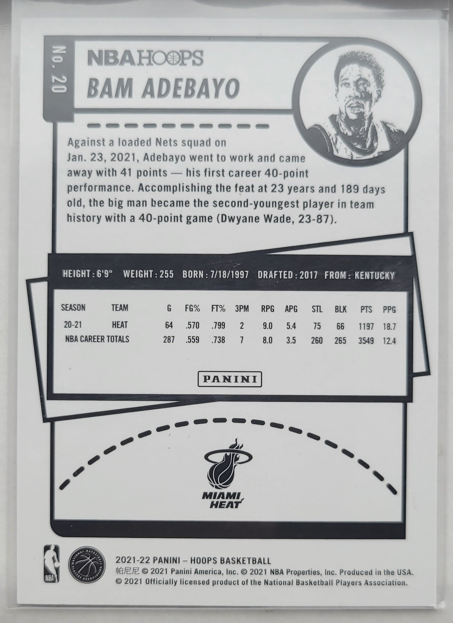 Bam Adebayo - 2021-22 Hoops Purple #20