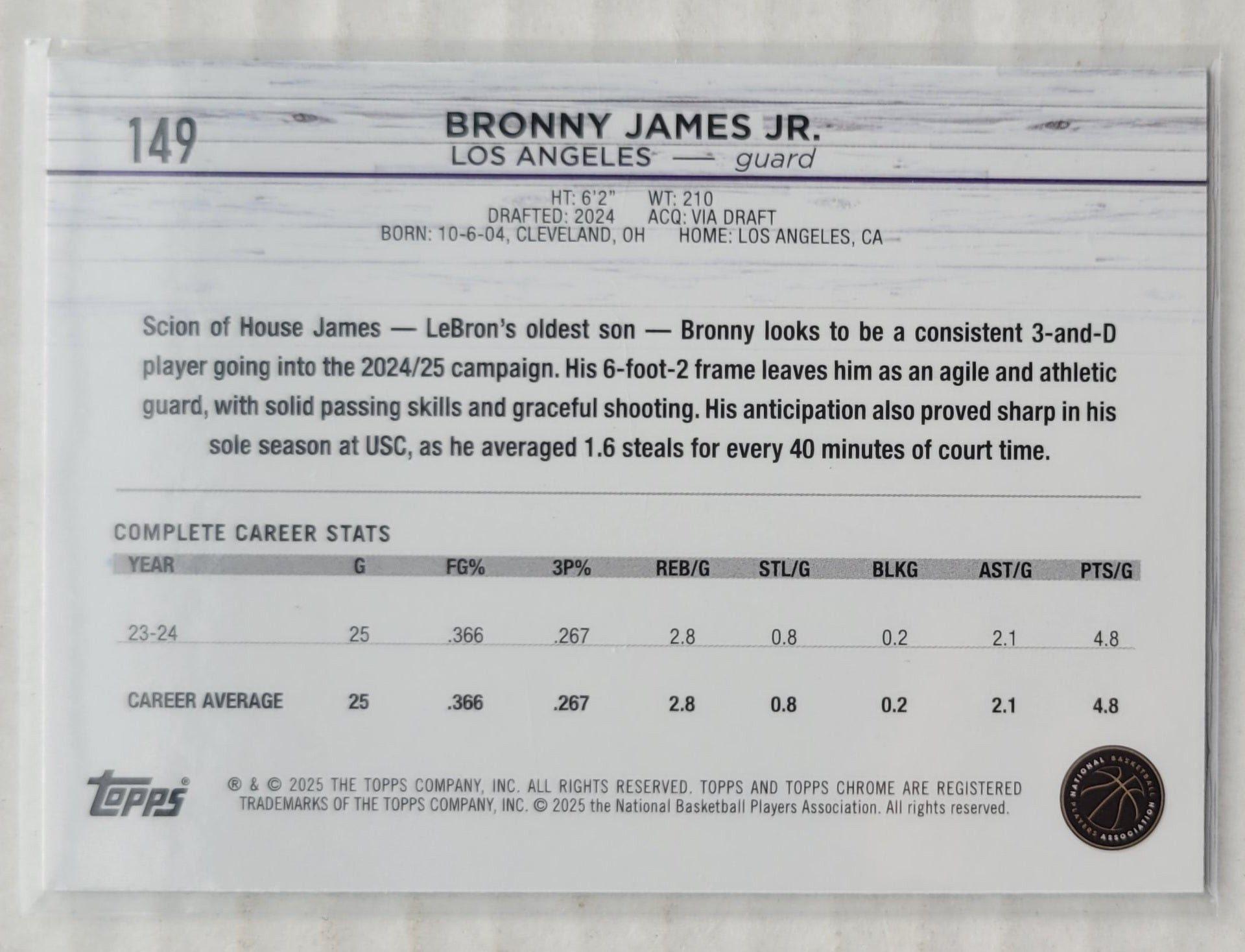 Bronny James Jr. - 2024-25 Topps Chrome #149 RC