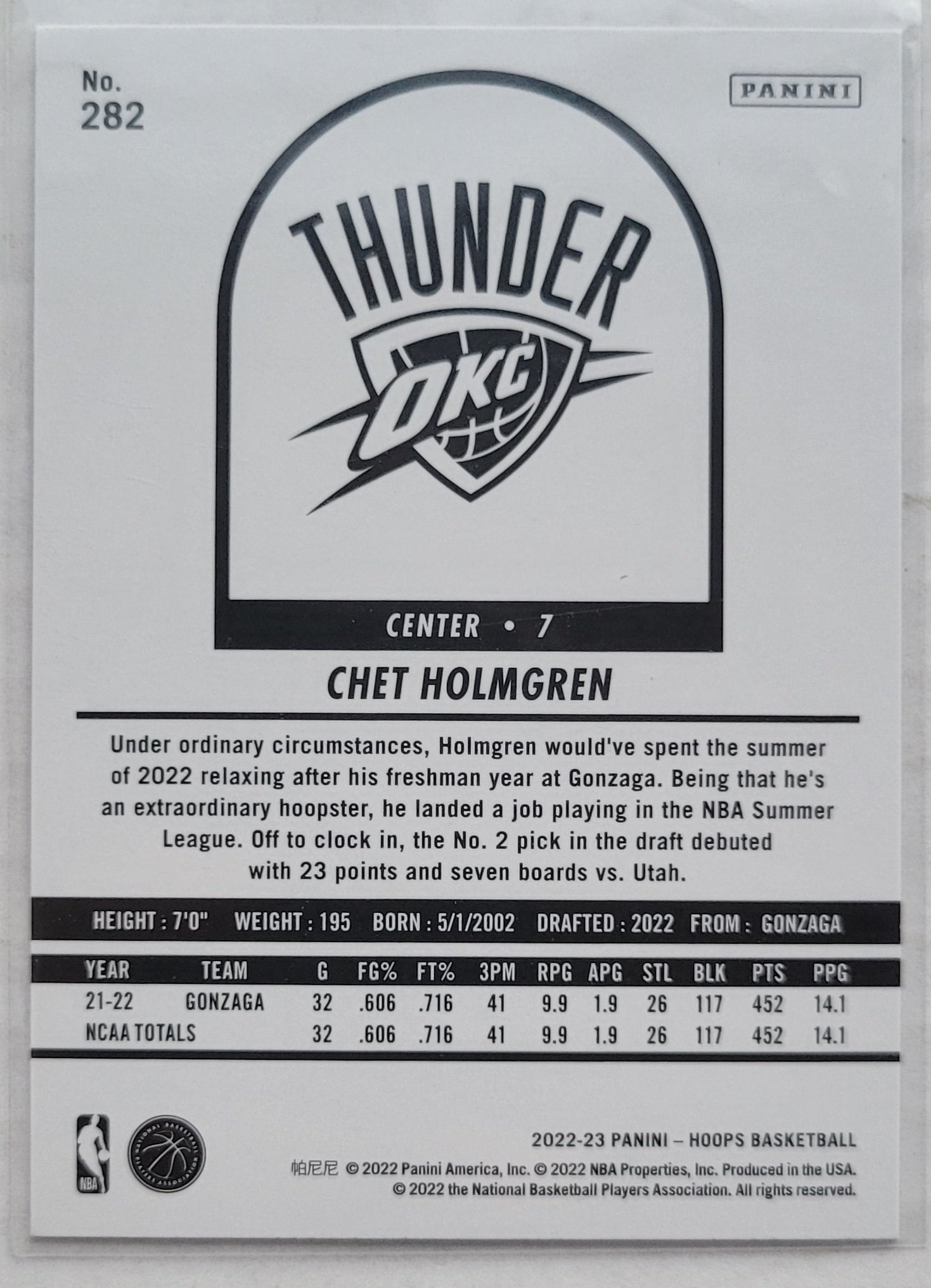 Chet Holmgren - 2022-23 Hoops Purple #282 RC