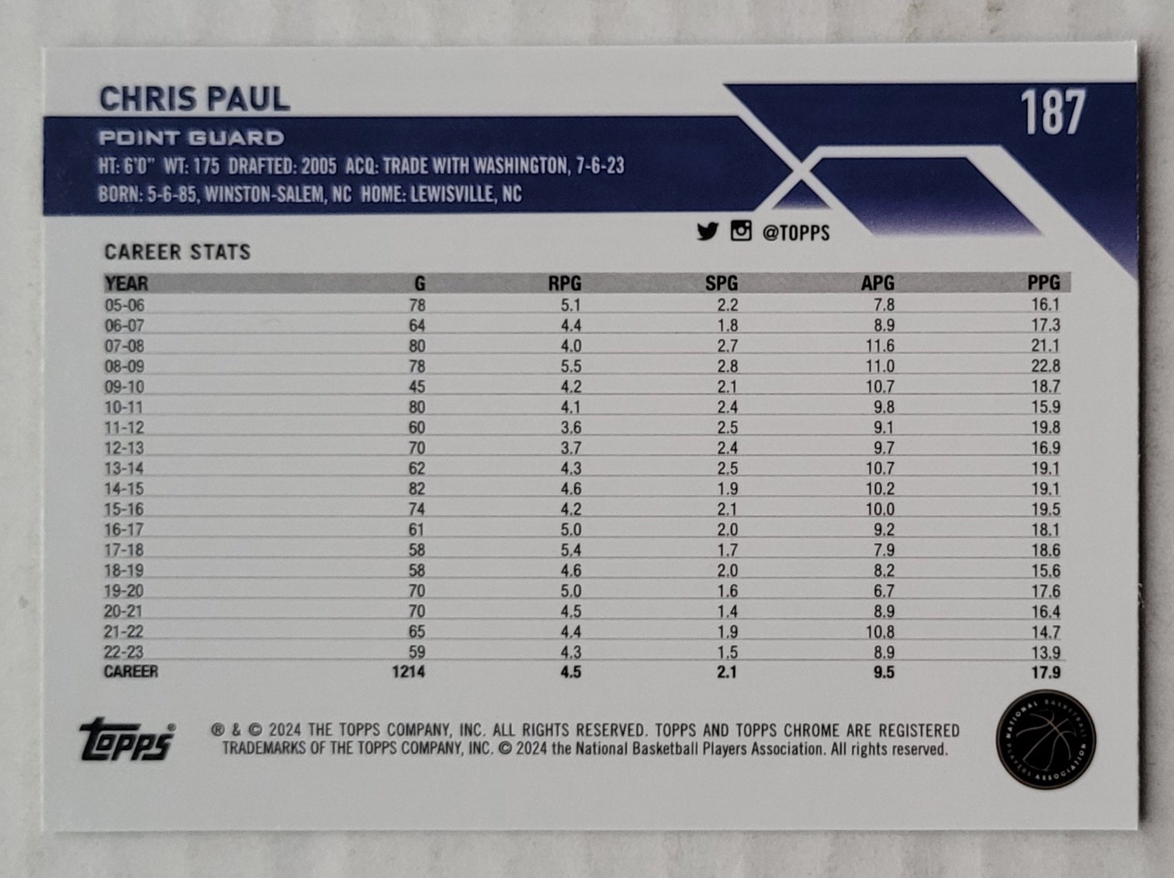 Chris Paul - 2023-24 Topps Chrome Green Topps Refractors #187