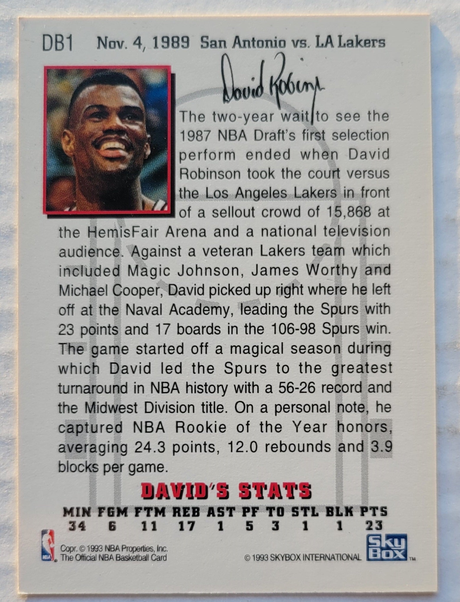 David Robinson - 1993-94 Hoops David's Best #DB1