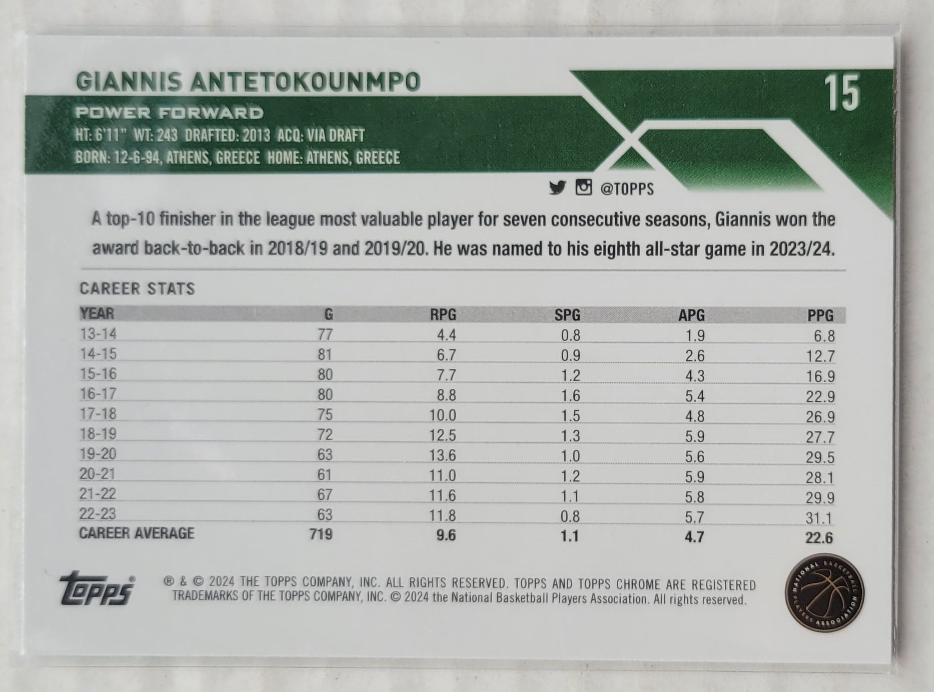 Giannis Antetokounmpo - 2023-24 Topps Chrome Green Topps Refractors #15