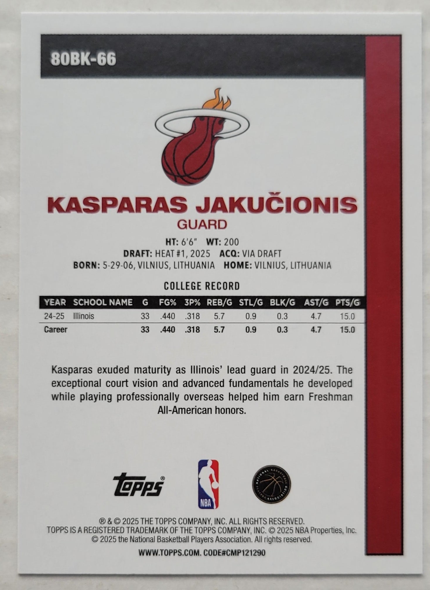 Kasparas Jakucionis - 2025-26 Topps '80-81 Topps #80BK66 RC