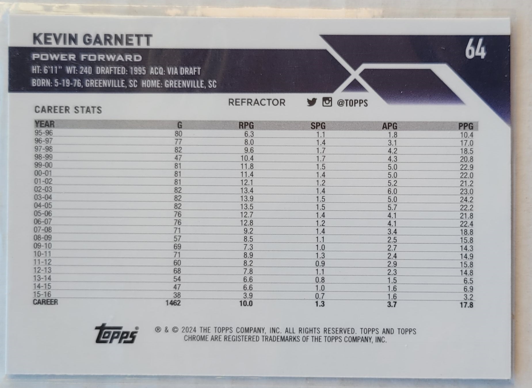 Kevin Garnett - 2023-24 Topps Chrome Refractors #64