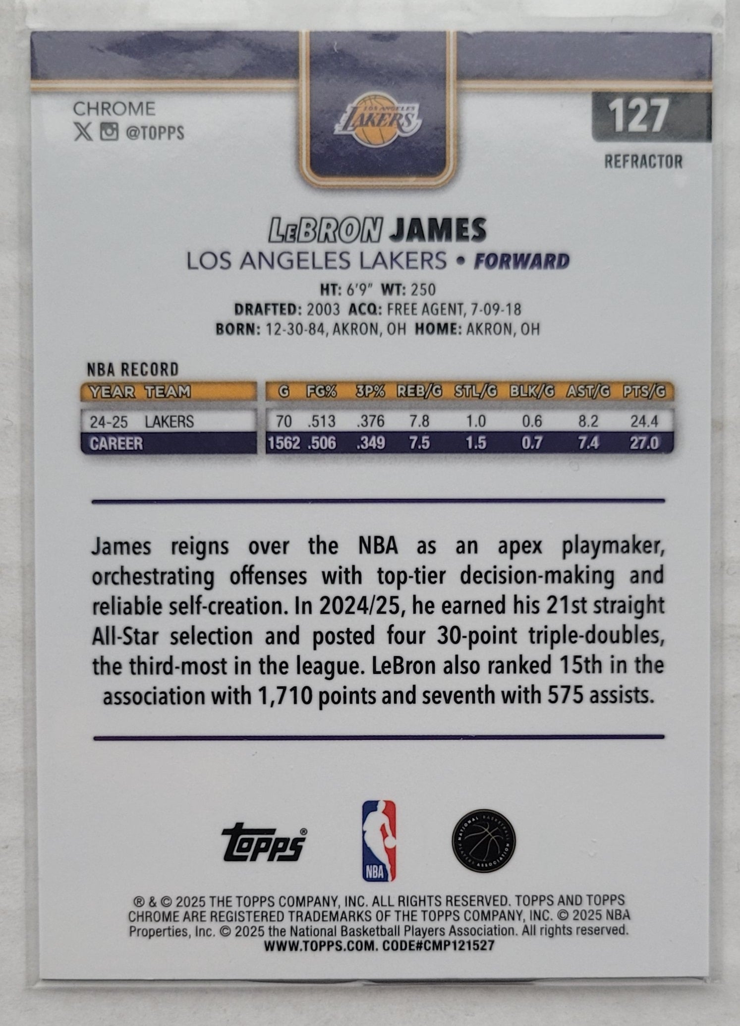 LeBron James - 2025-26 Topps Chrome Refractors #127