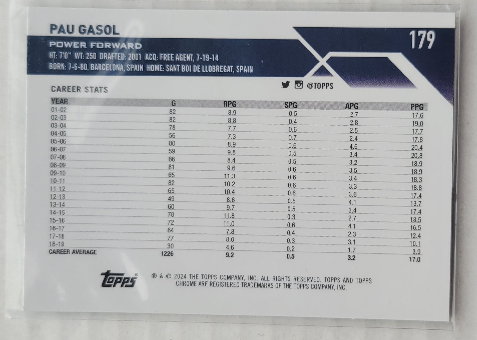 Pau Gasol - 2023-24 Topps Chrome Green Topps Refractors #179
