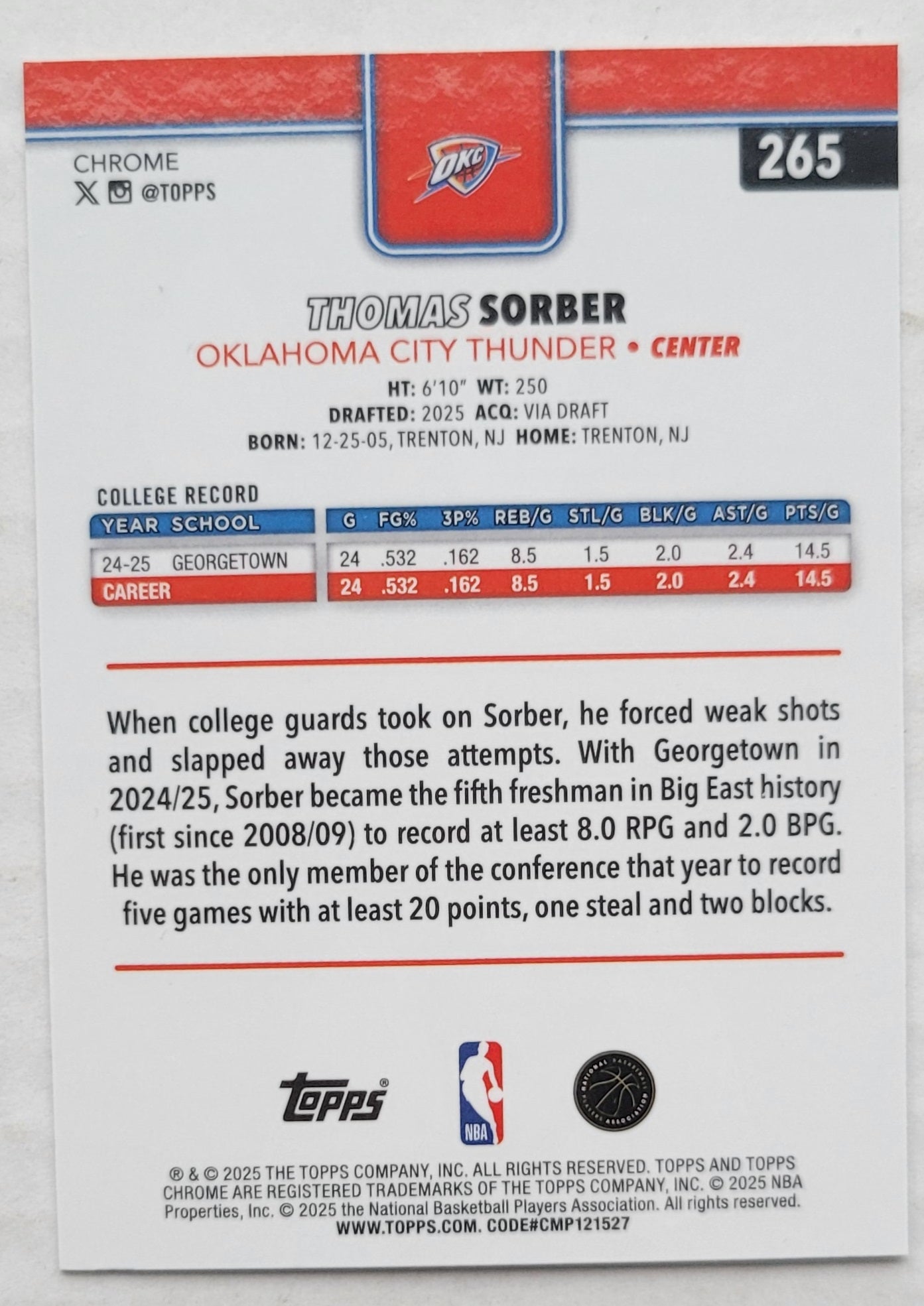 Thomas Sorber - 2025-26 Topps Chrome X-Fractors #265 RC