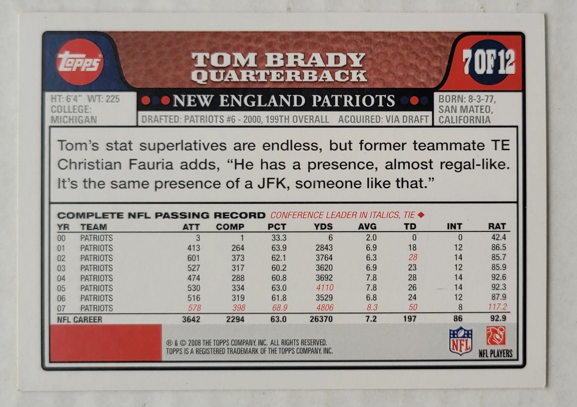 Tom Brady - 2008 Topps All-Stars #7