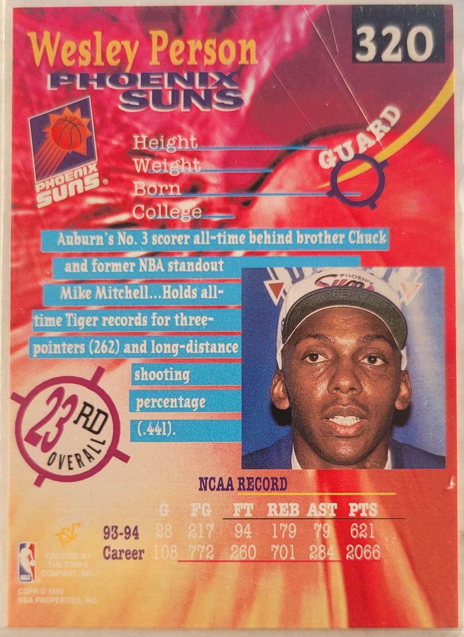 Wesley Person - 1994-95 Stadium Club Super Teams Division Winners #320