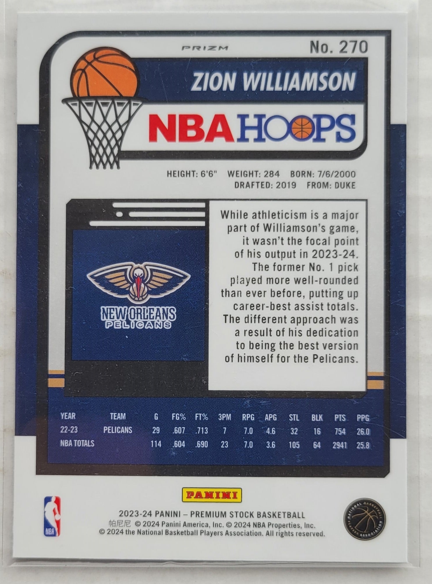 Zion Williamson 2023-24 Hoops Premium Stock Ice Prizm #270